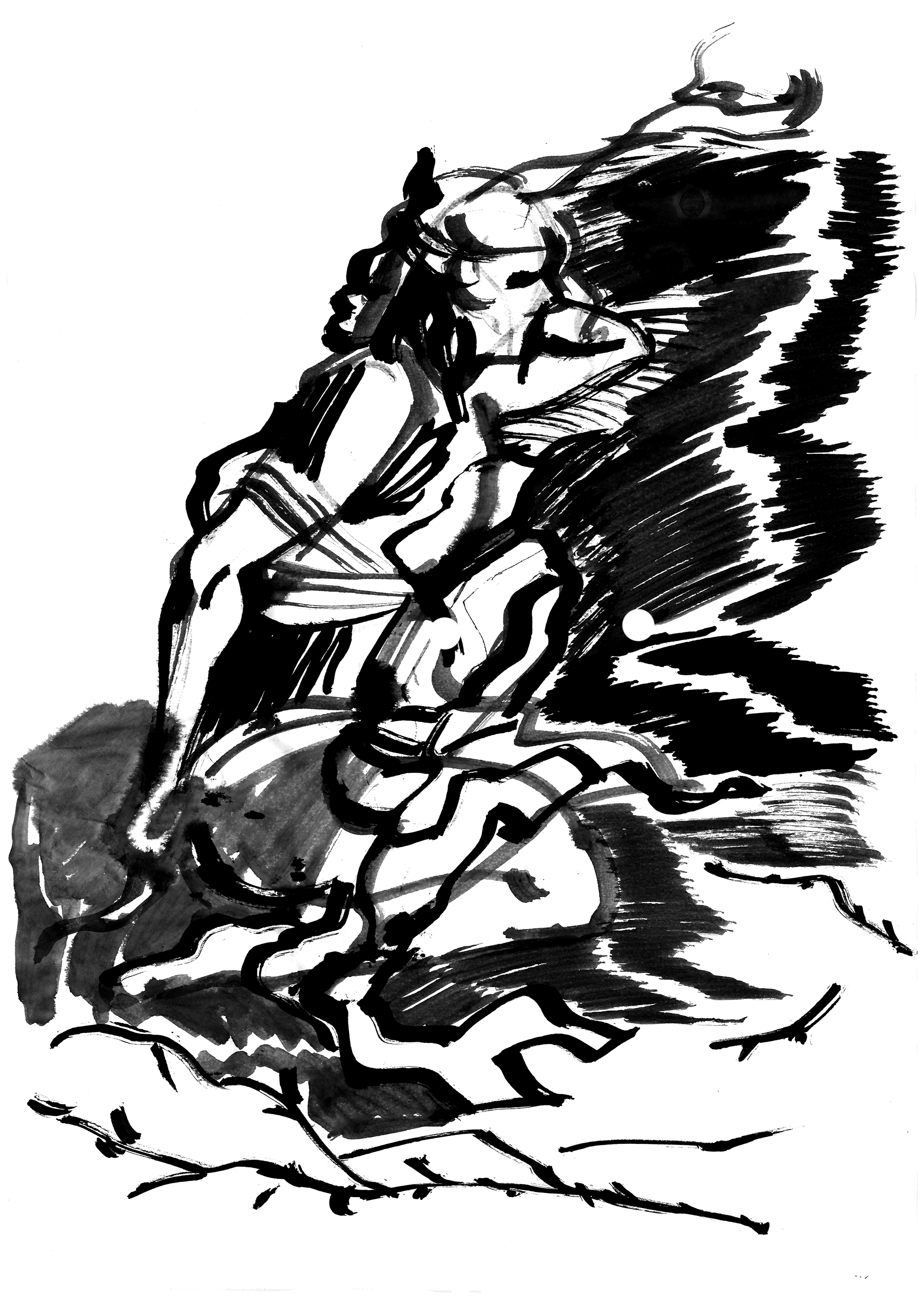 Sibeliusmuseossa. Dokumentoin performanssia mustepiirroksilla, piirtimenä Saaren ympäristöstä löytämäni oksa. Performanssin aikana toteutuneet piirrokset on lahjoitettu Sibelius-museolle.