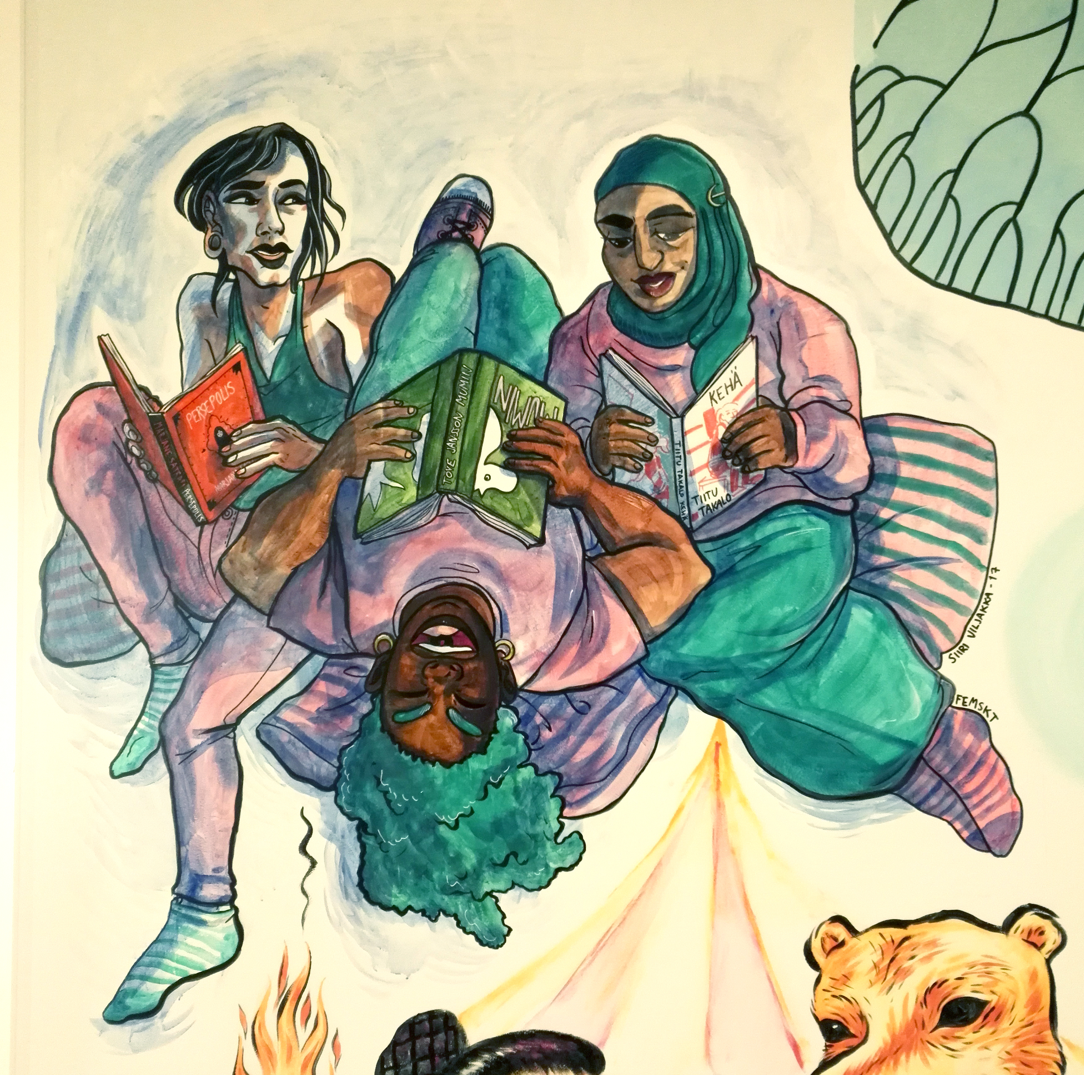 On Spring 2017 I painted an indoor mural to the Söderkulla library in collaboration with the city of Sipoo and Femicomix Finland.